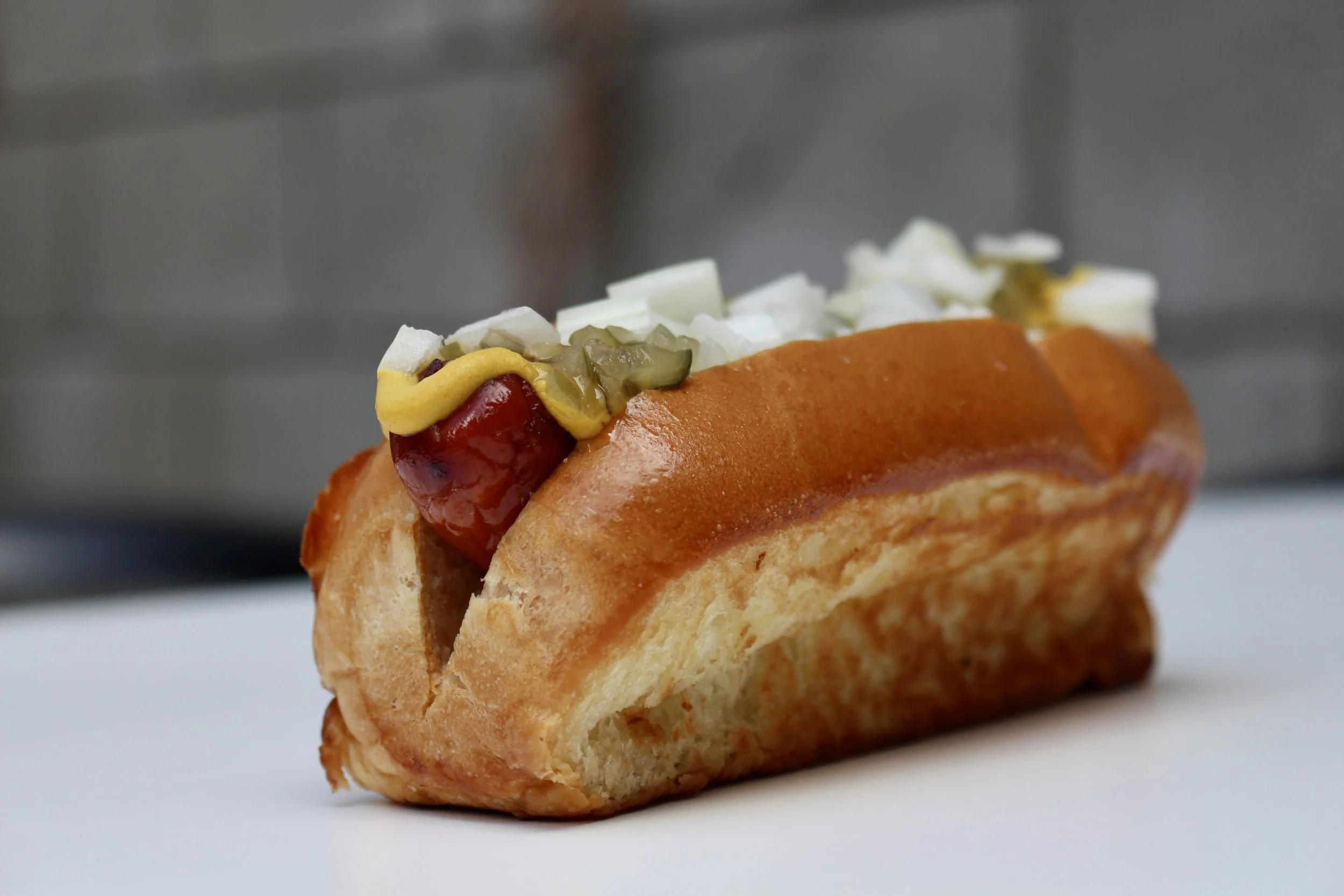 The Classic Dog ($8.00): Sometimes, simple is simply the best. Our Classic Dog features a juicy all-beef frankfurter nestled in a toasted brioche hot dog bun, dressed to perfection with the essential trio: tangy relish, creamy mustard, and crunchy onions. It's a timeless combination that never gets old.